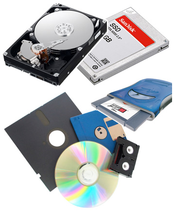 Tapes, CD, DVD, JAZ diskette, ZIP diskette
